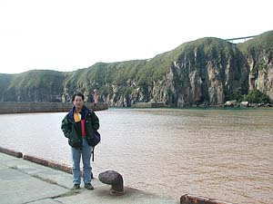 さて、宿に荷物をおいてしばし落ちついてもまだ4時をちょっとまわったところ。ということで夕メシの前に、この島唯一の集落のある港周辺をうろうろしてみることにします。まずは、話には聞いていたが港内の海の色をしげしげと眺めてみることに。いやぁ見事に赤茶色ですな。これは港内の海底から鉄分を含む水(熱水?)が湧きだしていることから起きる現象だそうですが、それにしても見事に赤い。上の写真、背後の崖の上に橋が架かっているのが見えると思いますが、あの橋の上から撮った写真を仕込んでおきました。上の写真の上にマウスを乗せると、港内と港外の海の色の違いが一目瞭然です。
