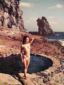 随分前の写真ですが、当時ミス日本の女性が、東温泉の湯船の前でポーズ取ってます。