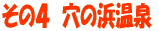 「あなのはま」じゃありません。「けつのはま」が正解です。干潮のみ入浴可能なこの温泉に行く道は現在ないといっていいです。林道がある程度近くまでのびてはいますが途中で道路が決壊しているそうで、ガレ場を下るなどのハードな部分もあるようです。というわけで、ここを訪れる気持ちのある人は絶対に現地の人から情報を入手する必要があります。簡単な気持ちで行くと遭難しかねません。それほどハード&人の入っていない温泉だと思ってください。