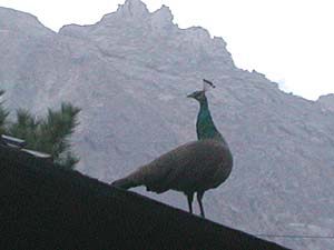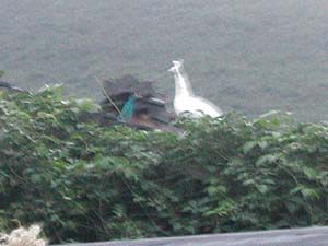 村の周辺、あちこちで見られるクジャク。しかし写真にうまく収めるのは