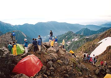 しかし!ここからが長かった!槍平の小屋まではまだ良しとできる。そこで焼酎ジュース飲んで気合いを入れたのがいけなかったのかも。滝谷出合までの、地図上の巻き道(地図上では平らだが、実際は細かい上下の繰り返し)でぐったり。顔洗って力をつけてもまたすぐしおたれたTakemaであった。頼みの白出小屋は、売店ありと書いてあったが休業中。穂高平の小屋でソーメン+ビールで再び英気を養ってみたら、バス停まであと10分!というところでいよいよの夕立である。ま、一日停滞しただけであとはやられなかったんだから、これで帳尻を合わせたことにしよう。