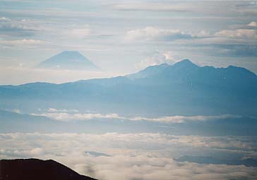 まずはお決まりの「ご来光」。富士山も見える。しかし、これより程なくして