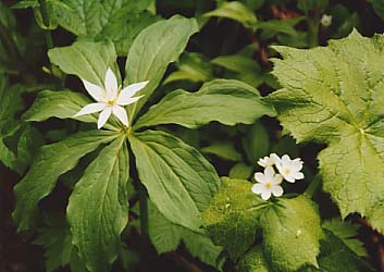 キヌガサソウ(左)の群落が何ヶ所かある。え、右は何だって?