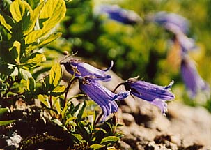 右のチシマギキョウは、この稜線上によく見られる花だが、下向きに生えるのが妙に謙虚。
