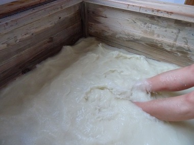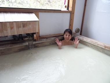 さて、この日「いの一番」(死語)のお客さんは、8月のイベント時にもお越しいただいた「たこやきさんペア」でありました。今回「にごり湯」という企画に最初に食い付いて下さいました(嬉)。もちろん一番湯です。 |