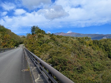 市道は県道に比べて道も細いのですが、途中栗駒山の展望地が2ヶ所あり、特に一ヶ所はなかなかの展望だったのですが、今回は高台に向かう取り付け道路が草ボウボウだったので断念し、橋上からの撮影としました。そもそもあそこは私有地だったのかもしれませんし、今後は入れなくなるかなぁ。 |