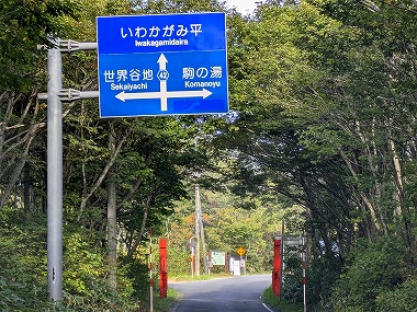 手前の看板には「休業」という貼り紙が。これ、8月の開放日が終了したときにおしんこどんが貼りつけたものですが(その時の様子はこちら)、今回はあえて外さず、予約を下さった方には「『休業』とありますがそのまま進んで下さい。その先にはA型ゲートと三角コーンとで道路が塞いでありますが、コーンを移動して(通過後はコーンを元の位置に戻して)下さい」と伝えてありました。無許可でコーンをずらして侵入する人はいないと思うので。 |
