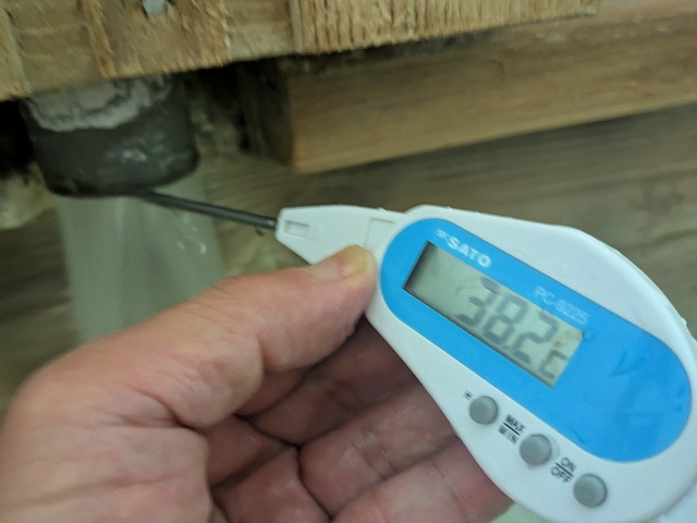 そんな思いから、今回は第一湯小屋(男湯)については湯守の同意を得て一週間前の清掃後から湯を流しっぱなしにしていただきました。そしてこの日の男湯はといえば‥ |