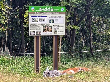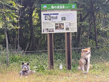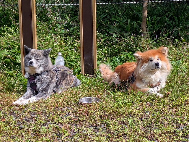 ま、この日は晴れベースとはいえ気温もそれほど高くなく(だからぬる湯の長湯がサイコーだったわけですが!)、ワンワンもアスファルトの上とかでなく寛げたのはよかったかな?ちなみに両犬とも待っている間は一度も吠えずで立派でした。ご主人が戻ってきたら若い茶犬くんが「お帰りー、待ってたよ(待ちくたびれたぁ!)」とばかりの嬉しそうさアピール♪ほのぼのしました。 |