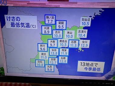 ちなみにこの日の朝はそこそこ冷えていたようです。というわけでお風呂(女湯というか第二浴室)にのんびりと浸かって寝ましょうかね。 |