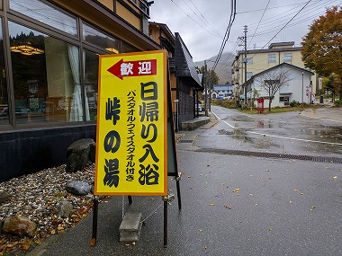 というわけで唯一この時間から日帰り入浴をやっていた「峠の湯」で朝風呂です。とはいえこちらの温泉は湯沢からの運び湯なんですね。すぐ隣の雪ささの湯は源泉かけ流しを標榜していたのでたぶんこちらもと勝手に思っていましたがあれま残念。それと、「バスタオル・フェイスタオル付き」って?確か提供はなかったはず。ただ当然タオルは持参していましたのでまぁいいや。 |