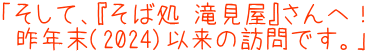 昨年末はクリスマスイブの夕食訪問でしたが(その時のページはこちら)、今回はお昼ごはん利用です。ちなみにこの日ここまで妙に遠回りというかのんびりと進んできた理由は、こちら滝見屋さんの開店時間に合わせてきたからです。 |