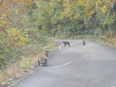 この林道、展望が開ける場所はあまり(いやほとんど)ないのですが、最初の方でちょっとした駐車スペースがあったのでさっそく休憩。道中には猿の群れもいましたが、車なのでまぁ大丈夫。チャリダーさんは威嚇されたりせずに済んだかな? |