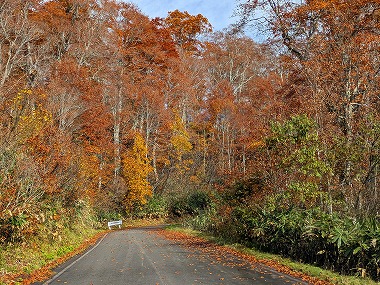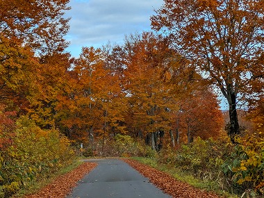 今回も、自分がイン側でのカーブ(ミラーなし)で大型バイク2台とすれ違ったわけですが、彼らは何とかすり抜けてくれました。危ないアブナイ(自分もできるだけイン側に寄せましたが)。バイクにとって落ち葉は本当に恐いんです。濡れた落ち葉路面などは凶器そのものですから。 |