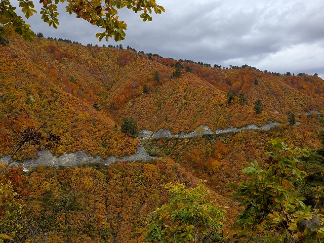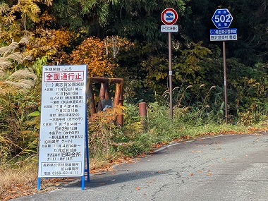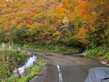 なお切明出発後の雑魚川林道や奥志賀林道の県道502号はこの3日後の11月4日からすべて冬期通行止めとなりました。シーズン最後に走れたのでよかったよかった、奥志賀林道の今回走った区間はそもそも初めての走行だったし。なおこの後走る国道も同じく11月4日で閉鎖となりました(後述)。 |