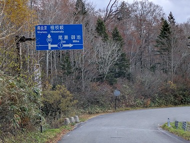 長かったワインディング路もそろそろ終わりで、県道1号の分岐(御池)までやってきました(15時55分)。この県道1号線(御池~沼山峠)ですが、今や全区間が通年一般車両通行止めなんですよね(冬期はもちろん閉鎖)。 |