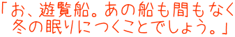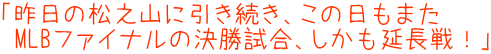 結局この日は18回までの大延長戦となったわけですが、これはすごかったよねぇ。おしんこどんはもう少し見ていたい様子でしたが、いや駄目です今日は福島県檜枝岐村まで行かねばならぬというわけでお勘定となりました。 |