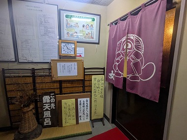 いやあの、「熱い湯」って47度どころか48度、いや49度も超えていたのでは?自分は福島会津の湯の花温泉石の湯にて実測48.8度の湯にも(10秒くらい)肩まで浸かりましたが(その時のページはこちら)、ここ旦過湯ではへそ上まで体を沈めたところで最初に浸かった足エリアが緊急アラートを発し、ヤバヤバとダッシュで退出しました。アブナカッタ。 |
