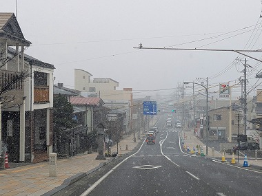 この日は寒気の影響で、諏訪エリアも晴れたり曇ったり、時にはご覧のように山も隠れ雪が舞うようなお天気でありました。さてさてこのあとは高速に乗ってのそこそこの距離を移動です。 |