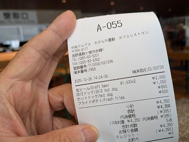 それでもまだ時間があるので売店を眺めたりしていました。あ、館内のお飲み物系の物価はこんな感じで、昨今の北アルプスの山小屋では350mL缶もワンコインでは買えないようなので、まぁ良心的かなというところです。 |