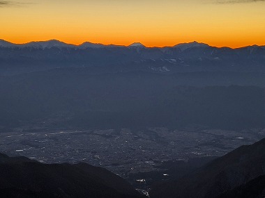 ![]() 夜明けも間近の曙の空。甲斐駒も綺麗に見えております。そして‥ |