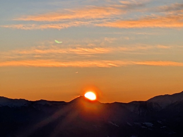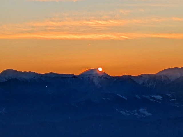 いや、まさかこの時期にダイヤモンド富士が拝めるなんて知りもしませんでしたので(いつもの通り下調べ不足)、感謝感激火事親父でありました!寒かったのですが外に出て見ていた甲斐があったなぁ。なお無風に近くて穏やかな朝だったことにも感謝。 |