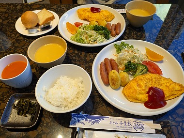 ちなみに朝ごはんはバイキングではなく1人1人にサーブされ、ご飯またはパンやスープを各自が取りに行く方式でした。この日の泊まり客は5組だけだったので(素泊まりのお客もいたかもしれませんが)このほうが現実的でしょう。わしわし撮影していたら従業員の方が「ご一緒の写真をお撮りしましょうか?」とおっしゃって戴けたのにも「ここがホテルである」がゆえのホスピタリティを感じましたねぇ。 |