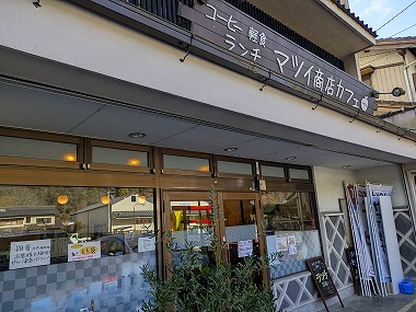 このあとはかなり進んだ先の旧足助(あすけ)町にてお昼ごはんをということにしました。最初に目指したお店は臨時休業でしたが、とりあえず食べられるお店を見つけてピットイン。もともとは雑貨を販売するお店だったのか、店内の一角には雑貨や小物農具も並んでいたような? |