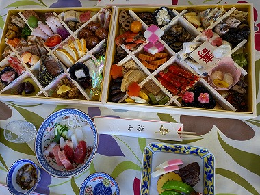 というわけでお泊まり客はこれにて全員集合完了というわけです。この後は部屋に戻り、しばし(焼酎で)まったりと過ごし、そして18時00分、いよいよ夕食タイムとなりました。 |