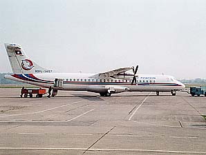 これに乗るんだろうなぁと思っていたら、あれれ違った、別の人たちが乗って行っちゃった。そして予想通り?出発時間になっても我々の飛行機は来ない。待合室のTVではのんびりと「ケシの栽培はやめましょね」系のCMをやっている。そしてみんな「することないなぁ」と思っている頃、うちらのヒコーキもいよいよご到着になりました。「おおっ、これまたATR72じゃあないのさ!」