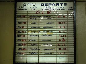 さて、ふと国内線出発時刻表が目に入った。羽田とか伊丹とか千歳ならもうむちゃくちゃな数の飛行機が発着しているはずなんだけれど、ここビエンチャンの国内線は‥。