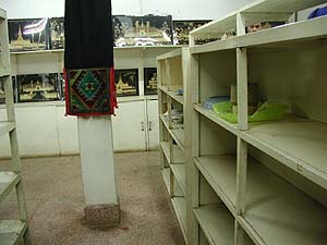 チェックインカウンターはなぜかコンコースとは別室の薄暗い物置小屋みたいな感じのところでした。でもまぁこれで乗りはぐれることはないし良かったヨカッタという事で土産物屋をのぞいてみると、ここだけは「おおっ、社会主義国!」という、われらのイメージそのままの感じでしたのだ。
