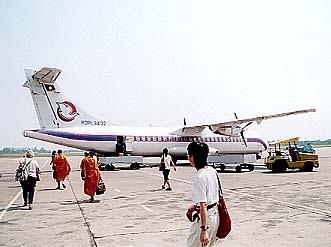 さて、いよいよ北のルアンパバーンに飛ぶ日だ。なんとLang Xang Hotelは空港まで無料の送迎バスを出してくれる。確かに大した距離じゃなかったけれど、ちと嬉し。空港までは「あーっ、昨日バイクですぐ近くまで来てたんだなぁ」と思えるような距離でした。
