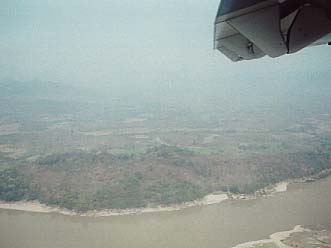 そうそう、ビエンチャンを離陸して10分もすると、晴れているにもかかわらず外の景色は見えなくなりました。なぜかといえばそれは「焼き畑」から立ち上る煙。何たってそれぞれが大規模に火をつけているものだから、このラオス北部方面からタイ北部にかけては青空が望み薄です。メコンに沈む夕陽はやはりビエンチャンがベストかもしれません。しかし、ここまで大規模に毎年やっているとなると、ある種の環境問題の域に達していると思うんですな。ルアンの町中でも常に煙の臭いはしていたしね。