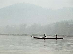 ルアンパバーンの町を出発してしばらくすると、メコン川沿いにも人家の気配はほとんどなくなります。川面には漁をする船が時々現れ、たまにカワセミなどが飛んでいたりして、気分は最高ですな。