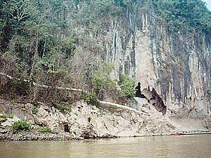 いよいよタムティン洞窟に到着しました。崖っぷちを横に延びる歩道は