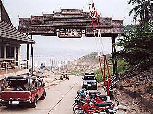 イミグレ前の道路には、ここが国境であることを示すゲートと門がありました。写真では読みとれませんが、「ここからインドシナ半島だもんね」などということが書いてあります。