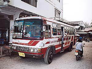 さて、このあたりではこちらも気が気でないことがありました。それは、ここから離れたところにあるチェンライ行きのローカルバスの発車時刻。どこかで聞いた話では最終は17:00だというんですね。しかしバス乗り場行きのトゥクトゥクはなかなか発車してくれないんです(乗り合いだから少しでも多く客を乗せたいわけです。ちなみにバス停までの料金は一律20B。すぐ脇の看板に大書してあります。交渉している人もいましたが、今度は無駄でした)。