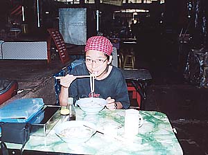 まずは市場に行って腹ごしらえ。場内にあるビーフン麺屋さんなんだけれど、これがあっさりしていてめっぽうウマイ。朝からお粥は何度も食べているうちに飽きるけれど、これなら毎日でもいいTakemaなのでありました。