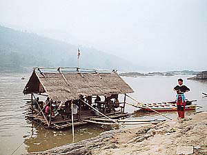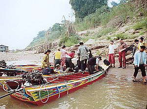 休憩&地元の人の乗り換えポイントを経て(左写真)、いよいよフェイサイの船着き場にたどり着きました。むはぁ、腰も尻も肩も痛かったぁ!とはいっても弱音を吐いている間もなくフェイサイ市内へ向かいます。今日中にタイのチェンライ市にいきたいのです。でもこの続きはまた次のページでね。