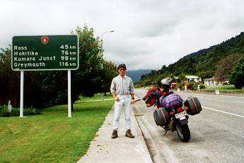 さて、ここからは再びひたすらの北上であるが、景色は一気に単調になり、たまにある家を見ながら「買い出し大変だろうなあ」などと余計なことを考えたりしつつ快調に飛ばす。心配していた天気も何とかもっていて、この写真を撮った Harihari という場所では一部に青空も見え始めた。「よしよし!」と思いつつ牛乳とミンスパイの昼食。と、ここまでは全て順調だったのだが、このあと Ross を越えたあたりから雨となり、Hokitika ではどしゃ降りになり、One lane Bridge に鉄道線路も加わった橋の上では、濡れたレールの滑りやすさにびくびくしながら渡り(それでも一瞬ツルッときた)、なんとか本日の目的地 Greymouth へ。ここに来るといつも雨なんだよなあと思いつつ濡れものを乾かす、いつものTakemaの姿がそこにあったのだった。おまけにこの日は日曜日。それでもスーパーがこの時間ならまだ開いているという事実を聞き、急ぎブロッコリーを買いにどしゃ雨の中を(ほとんど役にたたない傘さして)走ったりして結構疲れたのだ。