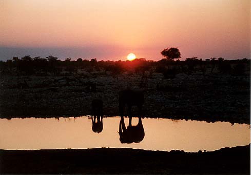 海に沈む夕陽は見たことがあっても、地平線に沈む夕陽というのはあまりお目にかかれない。しかしここナミビアでは確かに大地に沈んでいくんですな。あんまり中身のないページでごめんなさい。