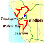 Otjiwarongoで米ドルを両替しようと銀行の窓口に行ったら、最初両替専用の窓口で待たされ、そのあと何やらバウチャーを渡されて「今度は一般窓口の列に並んでください」とのこと。何でこんな面倒なシステムをとっているのだStandard Bankよ、Swakopmundで別の銀行に行って両替したときは実にスムースにやってくれたのになぁ、などと不思議な気分になりながらも、まぁいいやとりあえず手持ち資金に少し余裕を持たせたしということでいよいよ出発。