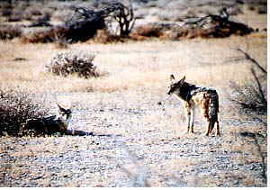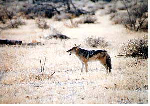 おおっ、初めての「肉食獣」登場。とはいえ、大型肉食獣ではない彼らは、「草食獣の狩り」をするというよりは平原の掃除屋というようなイメージが強いらしく、時には昆虫なども食べて飢えをしのぐのだとか。実際、道から少し離れたところで何かの獲物の奪い合いが起こっていたのを目撃しましたが、一番優勢だったのはハゲタカ系で、ジャッカルはその回りを遠巻きにしながらうろうろしているだけでした。そう考えるとちょっとかわいそうだな。