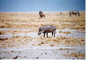 イボイノシシファンの皆様、お待たせいたしました(いるかなぁ)。以前ケニアで親子連れに出会って以来、結構好きなんですよ、このキャラクター。今回も、道路の50mくらい向こうを平行に突き進む5匹の家族連れにほのぼのしちゃいました。残念ながら水場には現れなかったんですけれどね。
