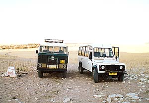 まずはこんな車でビューポイントまで移動する。途中にはミーアキャット(だろうか)が直立不動でお出迎え。車を降りてすぐ近くの小山に登ると、そこがもう絶好の展望台だった。運転手さんは、車に積んできたクーラーボックスのふたを開け、「Pub is Open!」とのたまう。中には冷えたビールやジュースが一杯。なるほど良い考え(というか商売)だな、ということで早速注文する。
