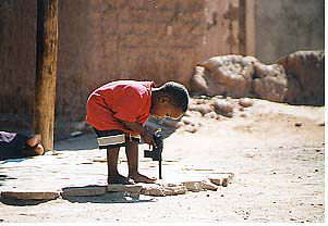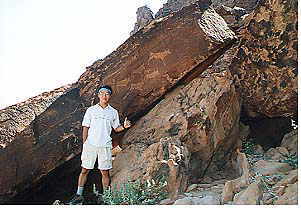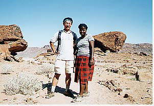 はぁ〜い、坊やぁ、真剣そうだねえ。非常警戒態勢中のようだねぇ。でも、横になっておやすみ中のお母さんの足が左側に見えてるよ。もちろんおもちゃの銃。というわけで、何とも平和なTwyfelfontein-Rock Artエリアの午前中は何事もなく過ぎていくのでありましたとさ。