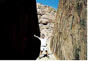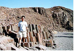 こんな「大地の不思議」を見たあとは、いきなり天地まっぷたつみたいな岩の割れ目を見てみたり、放牧中の山羊が直立状態で木の葉を食いまくっていたりだの(ケニアでも四つ足動物の二つ足直立食事風景を見たけれど、我々が思うよりはるかに器用なんですな)などのうだうだを見ながら、いよいよTakema一行、さらに足をすすめるわけでっせ。