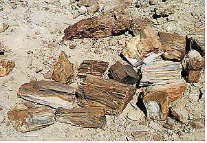 ここの木石は「Petrified Forest(石化した森)」と呼ばれ、約2億6千年前の樹木だということです。かつては今よりもたくさんの木石が露出していたそうですが、1950年ころにかなり盗掘されてしまい、今ではかなり数が少なくなったということのようです。でも、素人から見てもこれだけのものが見られるわけですから、専門家の方から見たら垂涎の的なのでしょうね(え、誰かを念頭においた表現じゃないかって?)。
