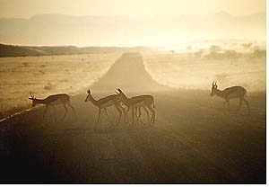 そんなわけで、宿の灯りが見えたのは日没とほぼ同時。周りに何もないまさに一軒家の宿。でも、この宿がまたすごかったんですな。次のページでは「究極のリゾートUin Twyfelfontein Country Lodge」をお届けいたします。